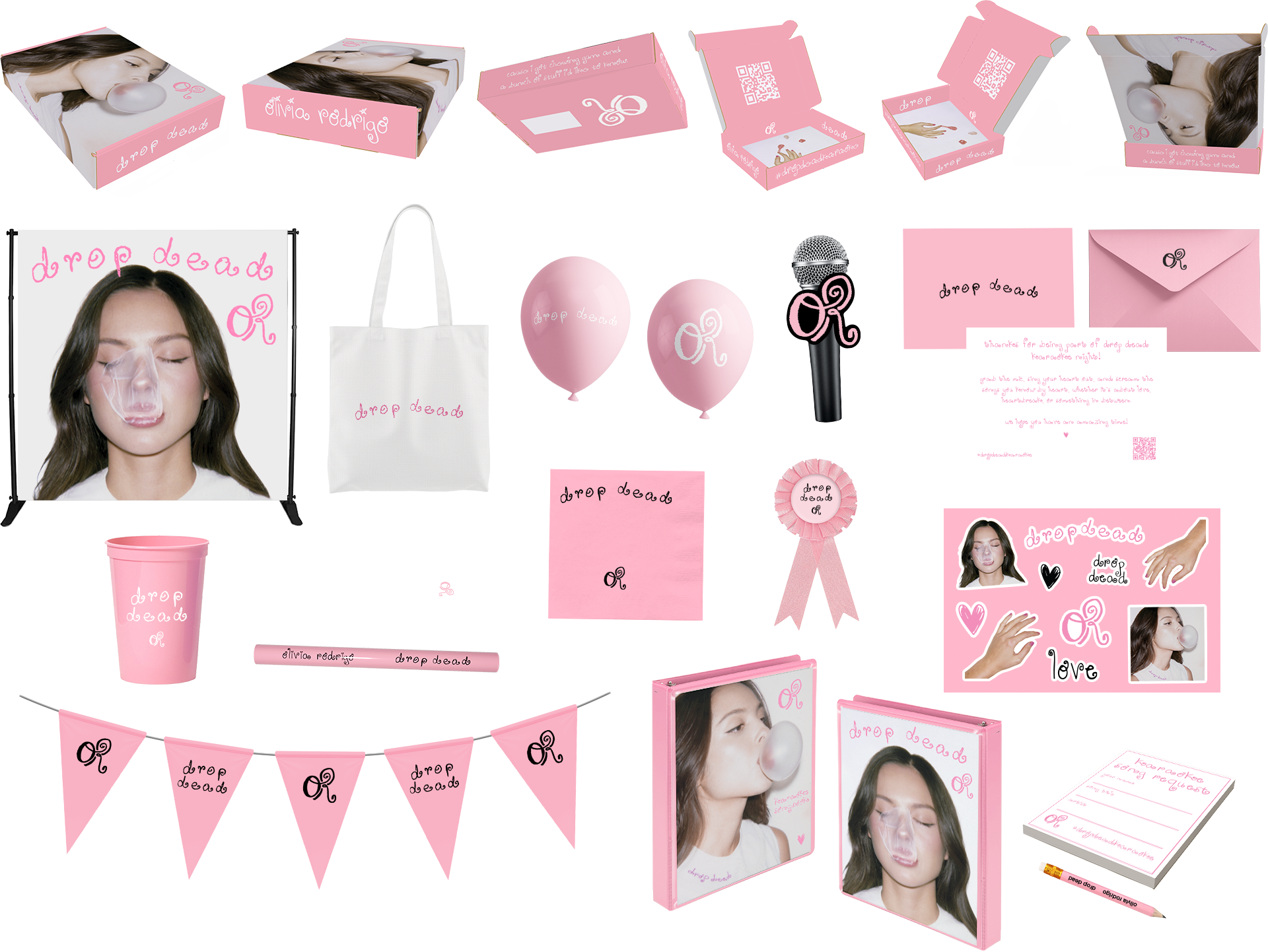 Commissioned by IHEARTCOMIX to design assets and physical products supporting the release of Olivia Rodrigo’s “drop dead,” the lead single from her third studio album. The campaign centered on two real-world activations built to get fans physically involved in the release: a multi-city gum wall installation and a global karaoke party series spanning 24 cities worldwide. “drop dead” debuted at number one in the US, UK, Australia, Canada, and Ireland on release.